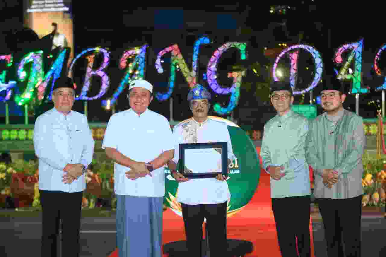 Penghargaan tersebut diserahkan dalam rangkaian peresmian revitalisasi Bundaran Air Mancur (BAM) Tugu Cempako Telok bertuliskan “Palembang Darussalam” yang digelar di kawasan titik nol kilometer Kota Palembang, Minggu malam (15/3/2026).